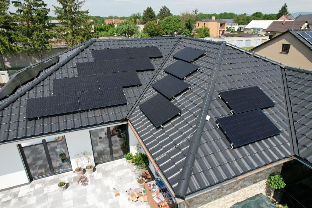 Instalace fotovoltaické elektrárny na sedlovou střechu rodinného domu o výkonu 10 kW. Střídače, MPPT regulátory, řídící jednotka Cerbo a dobíjecí stanice pro elektromobily od značky Victron Energy. Bateriové úložiště o deklarované kapacitě 10 kWh.